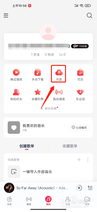 进入音乐云盘界面,就能找到网易云音乐的云盘了。