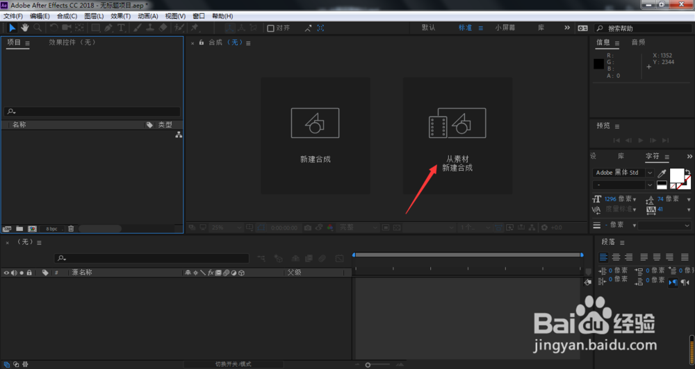 1、我们打开AE,点击从素材新建合成