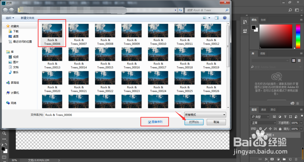 选中我们第一帧图片,勾选图像序列,点击打开