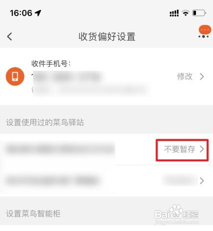 设置不要暂陕愁斤存。:选择使用过的菜鸟驿站,选择为不要暂存即可。