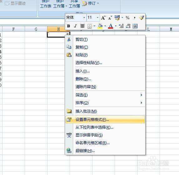 右键点击H1,选择“设置单元格格式”:
