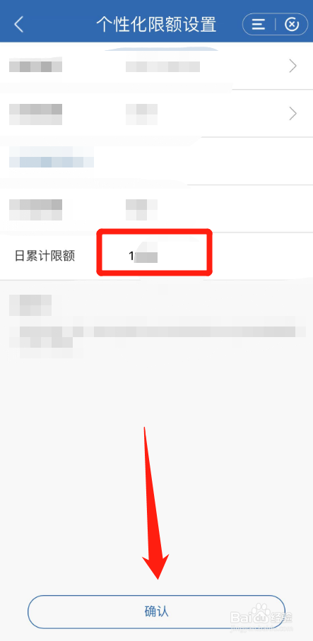 在【日累计限额】右侧输入单日限额,然后再点击【确认】即可