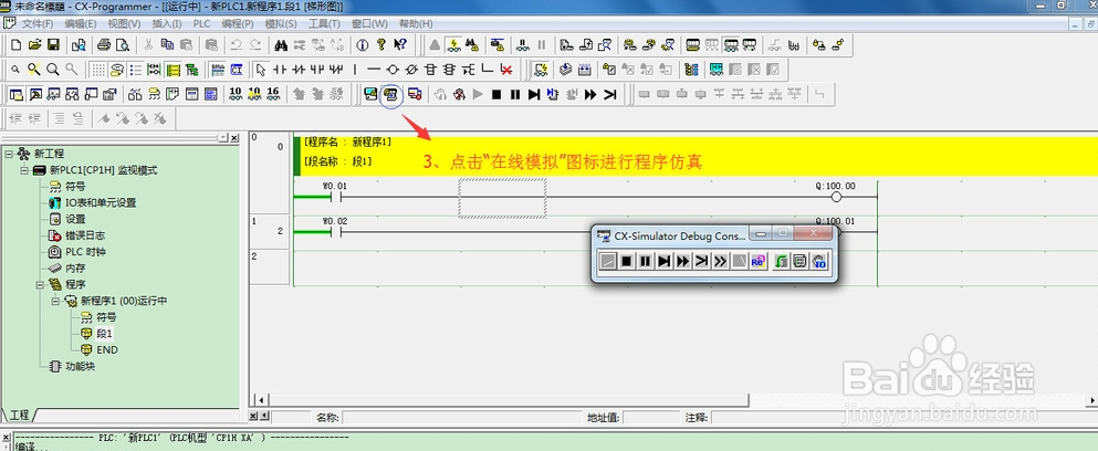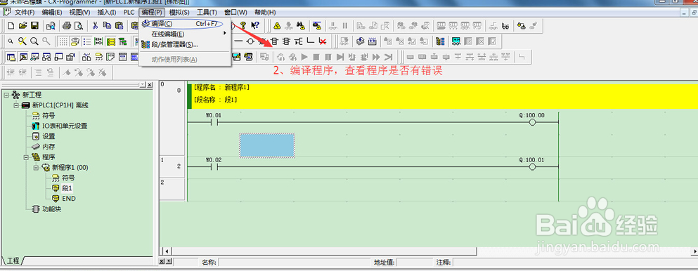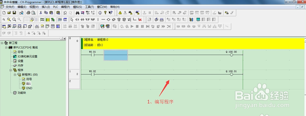 打开CX-Programmer软件,编写一端程序。