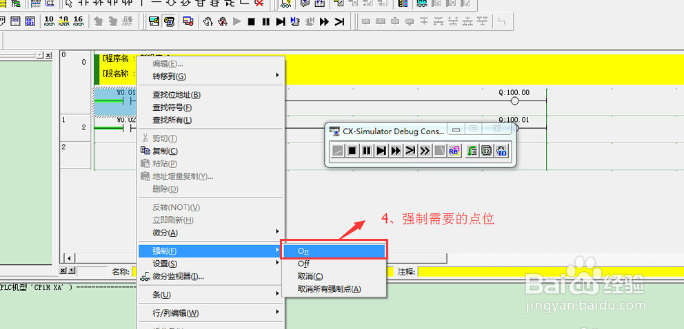 选择需要“强制”的点位。点击鼠标右键,弹出菜单,选择“强制-On",或者“强制-Off”。需要取消时,选择“强制-取消。