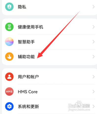 1、打开手机设置界面点击辅助功能