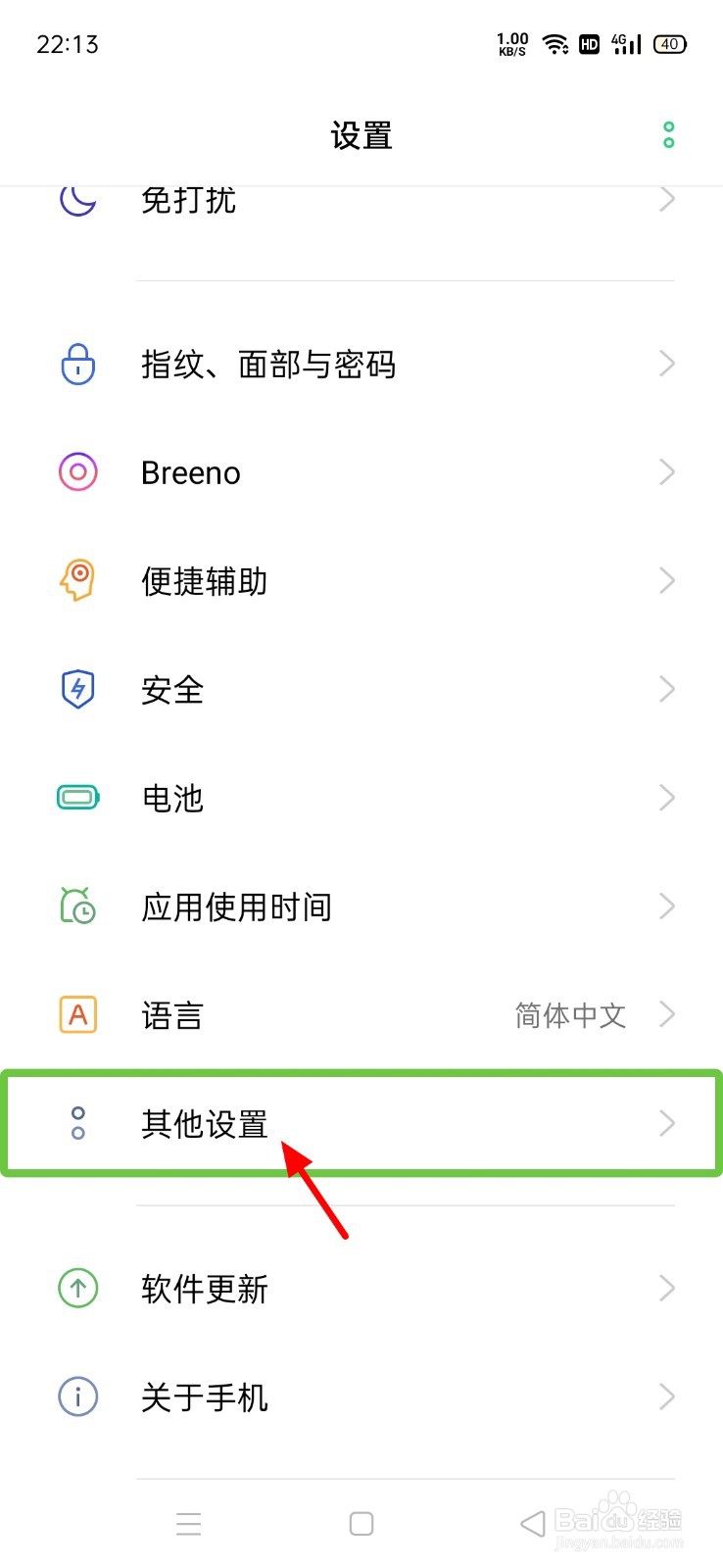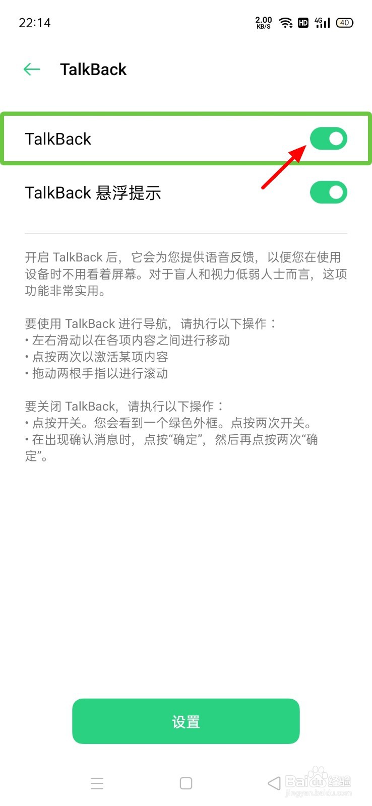 打开手机,在设置选项下,打开其他设置选项。在无障碍选项下,打开talkback选项,单击关闭即可完成关闭。