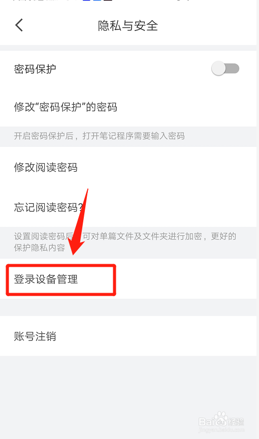 在“隐私与安全”窗口中,找到“登录设备管理”选项并点击它。
