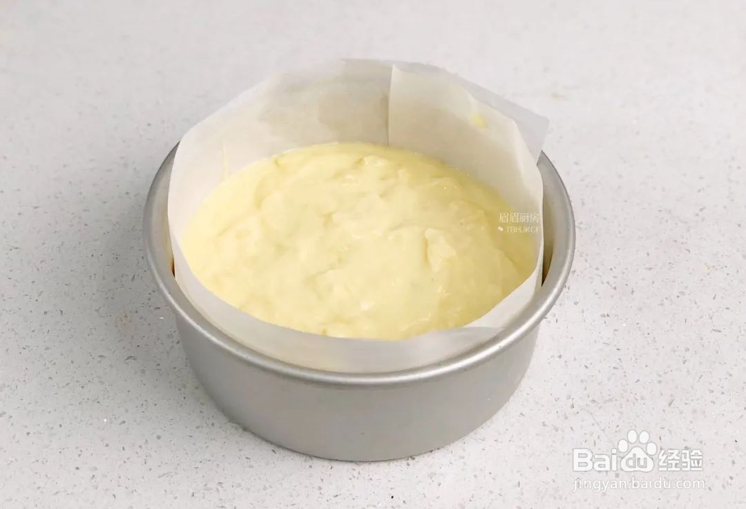 倒入模具中轻震两下,借助硅胶铲整理平整表面,放入冰箱冷藏约2小时左右;