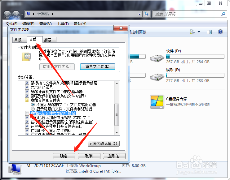 在电脑上,点击打开计算机窗口,在文件夹选项中,取消勾选隐藏已知文件类型的扩展名即可。