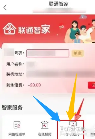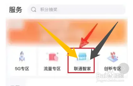 打开中国联通app,进入之后,在页面里选择点击联通智家。
