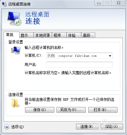 打开“远程桌面登陆”对话框,然后选择“选项”下拉按钮