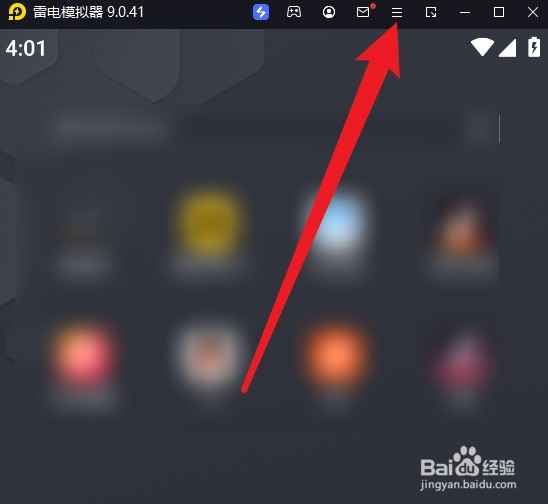 在雷电模拟器软件界面, 点击右上角的菜单图标。