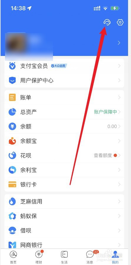 从我的中心,点击客服图标