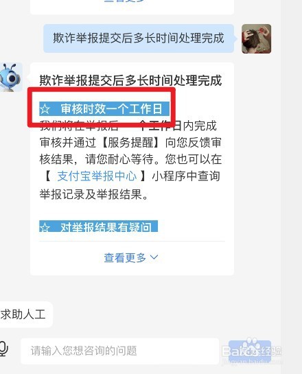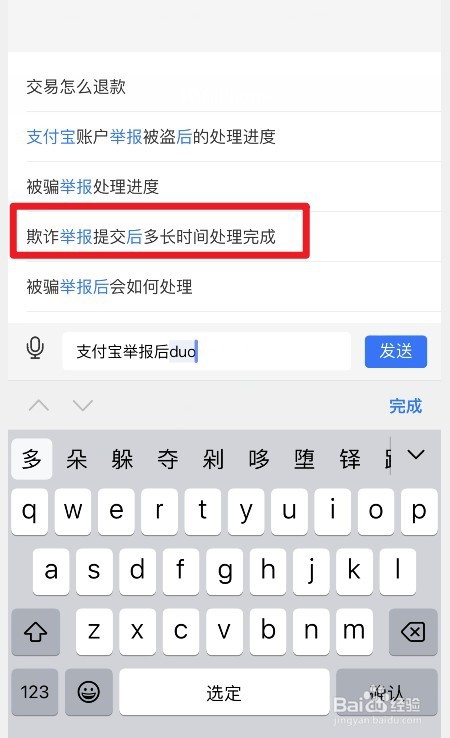 然后输入关键词,点击【欺诈举报提交后多长时间处理完成】