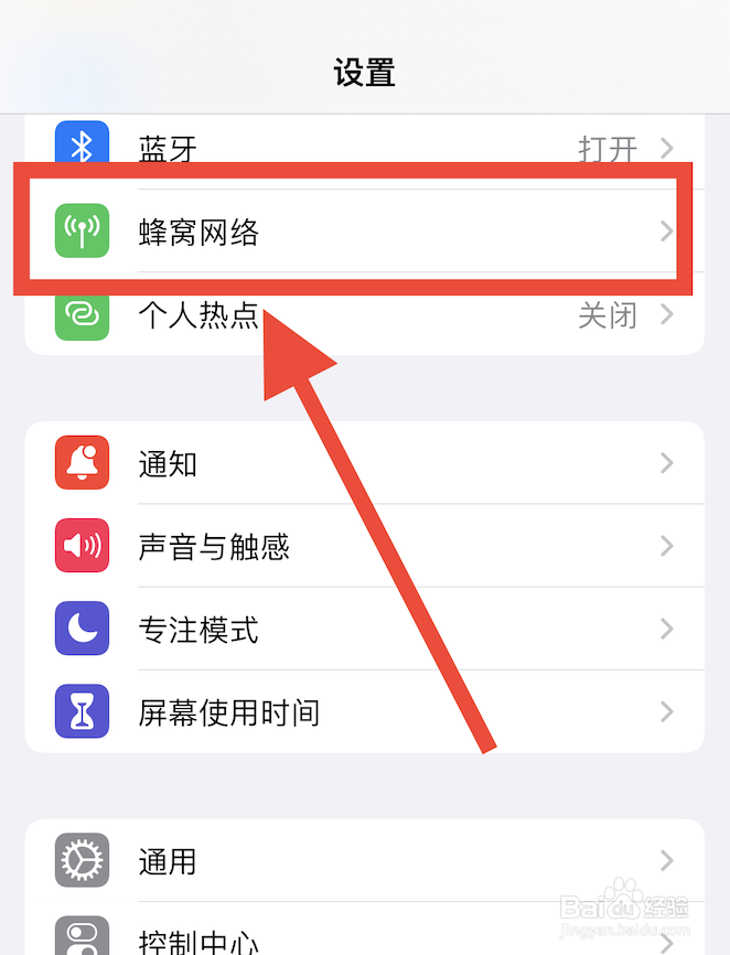 首先打开手机的设置列表,点击【蜂窝网络】。