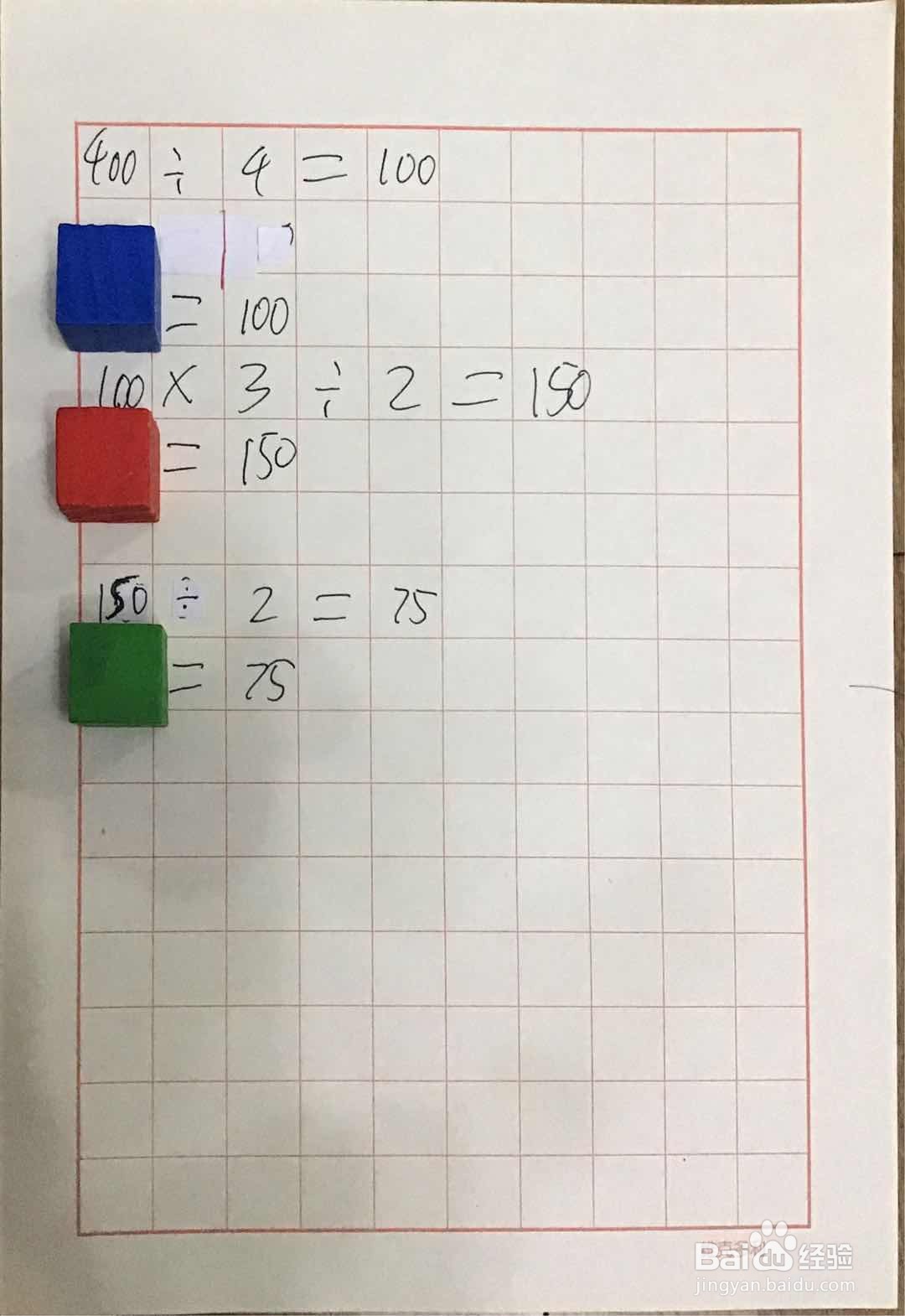 4个小蓝=400,那么我用400÷4=100算出小蓝=100