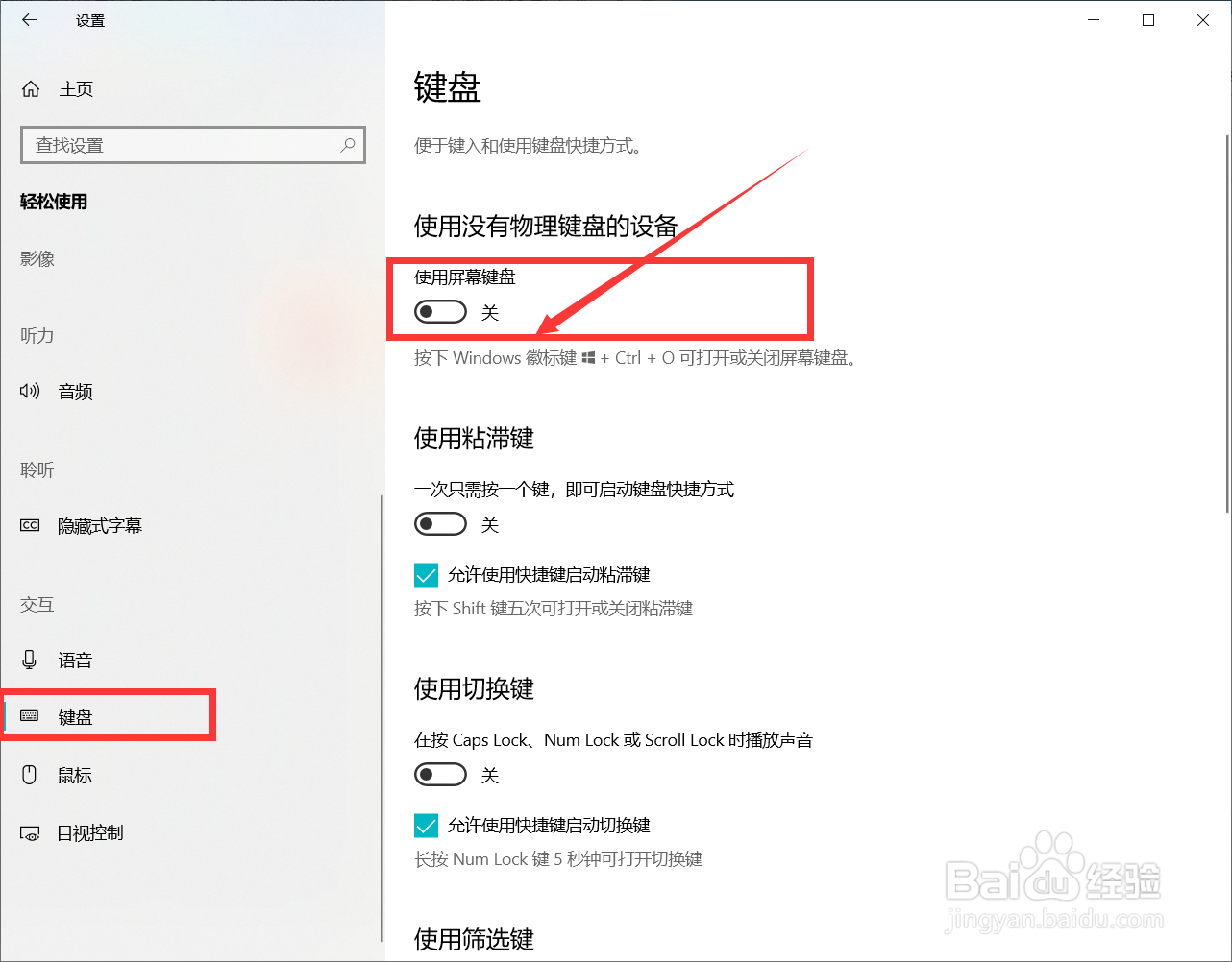 最后点击左侧键盘,再点击开启使用屏幕键盘即可。