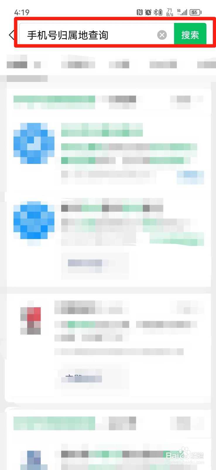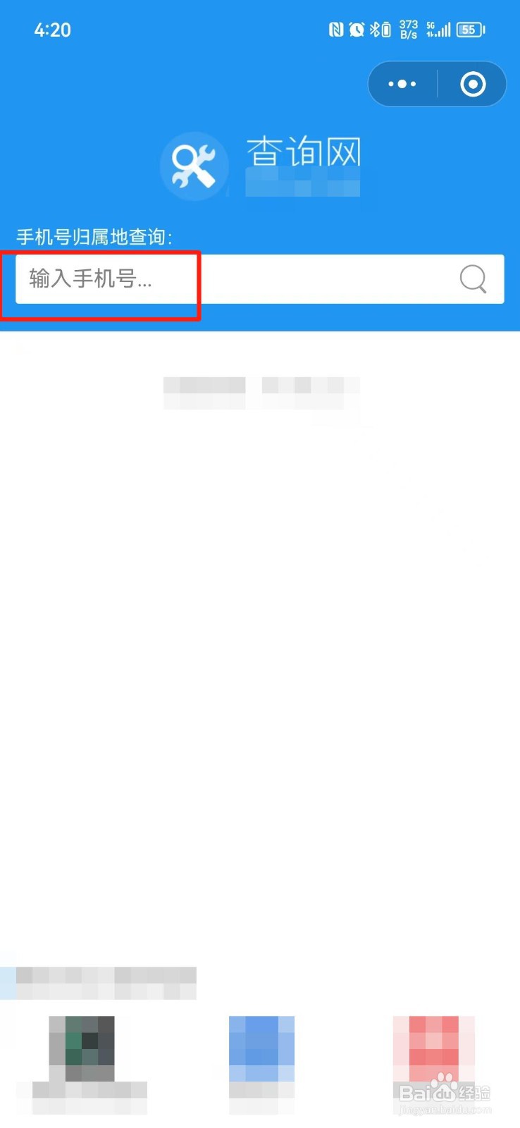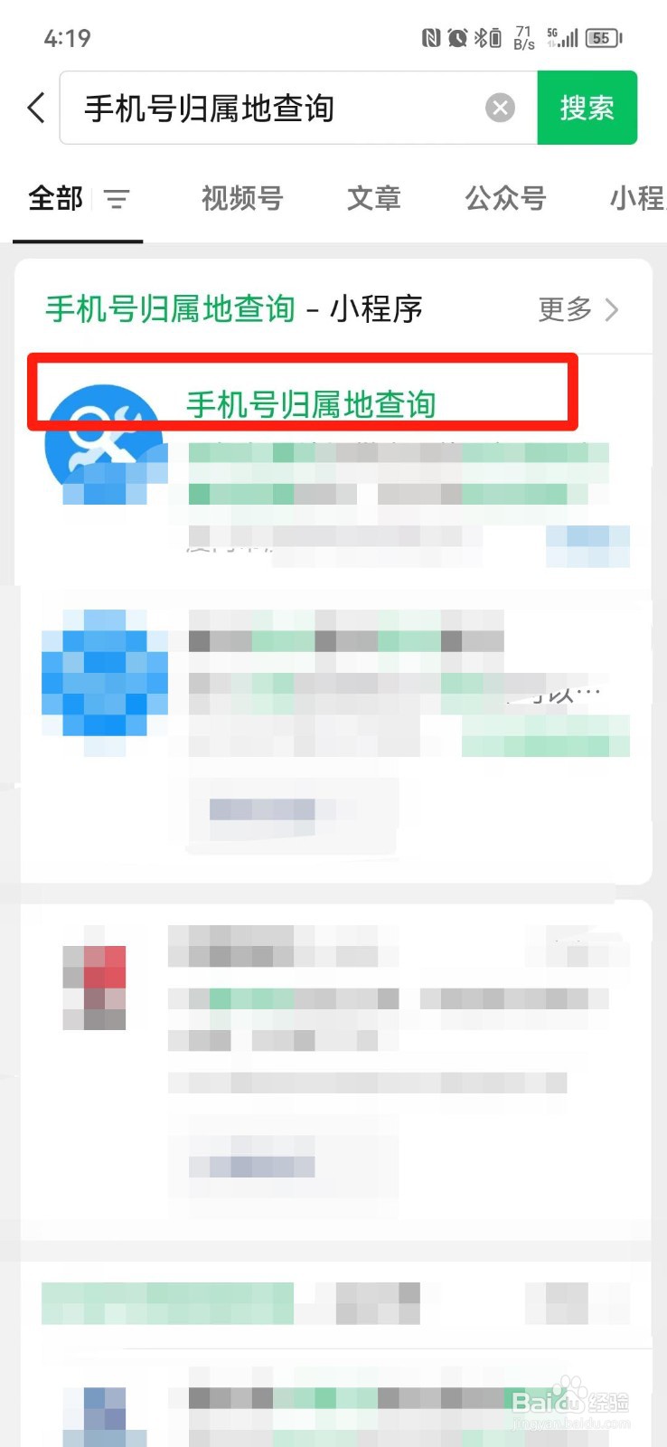第二步:在搜索结果页面点击【手机号归属地查询】小程序