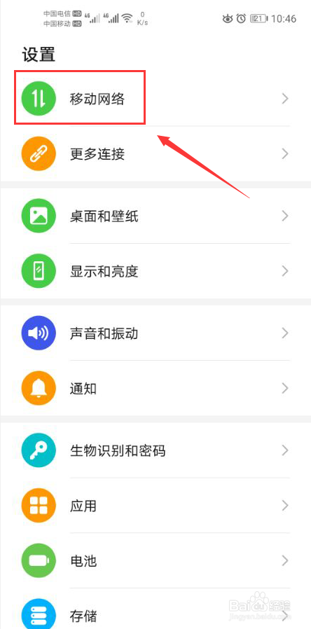 在设置功能中点击打开移动网络设置