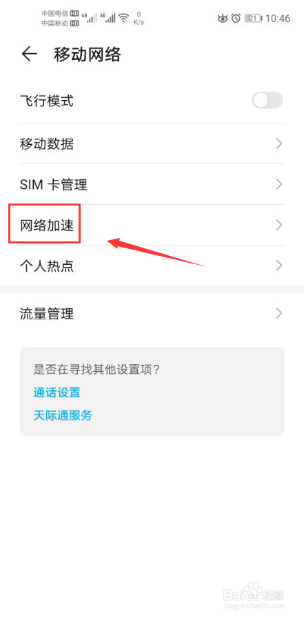 在移动网络设置中点击网络加速功能