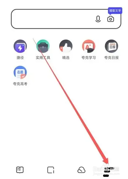 打开手机夸克,在首页点击右下角横线,如下图。