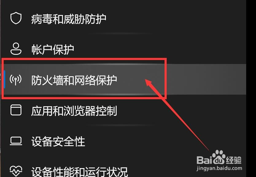 点击左侧的【防火墙和网络保护】。