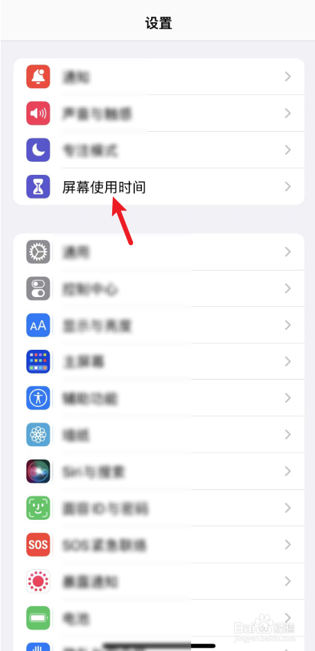 打开手机设置后,选择屏幕用时间。