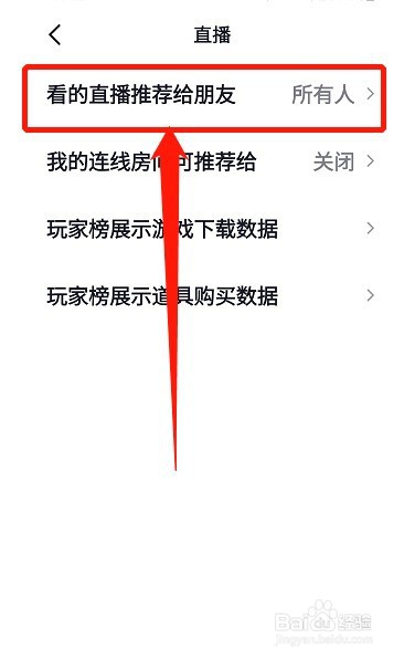 选择看的直播推荐给朋友设置项。