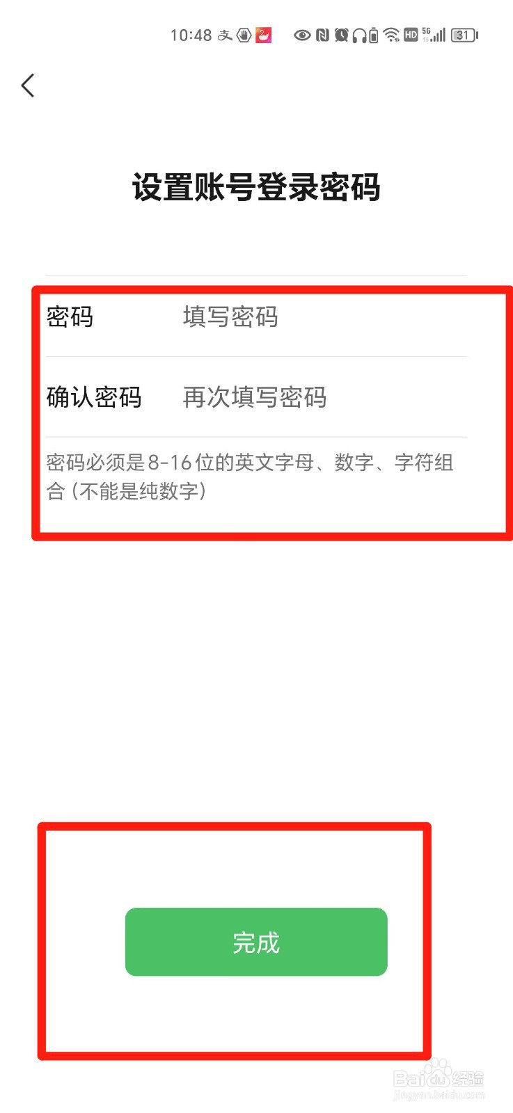 9/9设置微信小号账号登录密码,点击【完成】即可