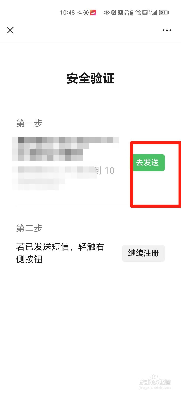 6/9点击页面上的【去发送】待跳转到短信页面发送短信