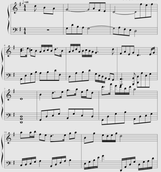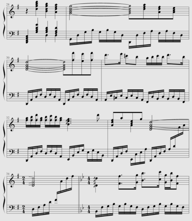 连接不是与爱情主题形成鲜明对比的曲调,它是由主题乐句发展变化而来的,是一段节奏自由的华彩。