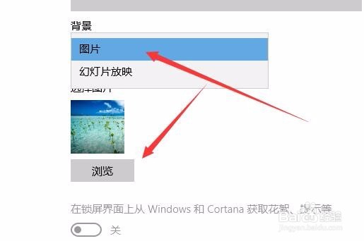 4/7在右侧的设置界面,我们点击背景下拉按钮,在弹出菜单中选择“图片”菜单项。