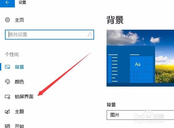 3/7接下来在打开的个性化设置窗口中,点击左侧边栏的“锁屏界面”菜单项。