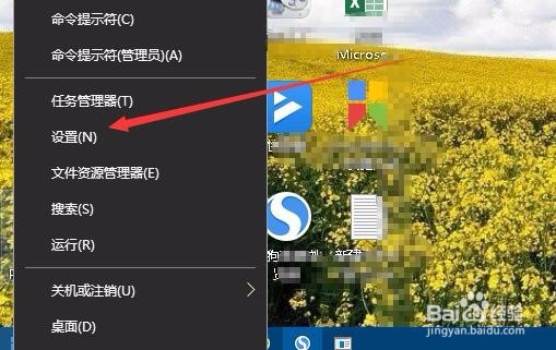 用鼠标右键点击桌面左下角的开始按钮,在弹出的菜单中点击“设置”菜单项。