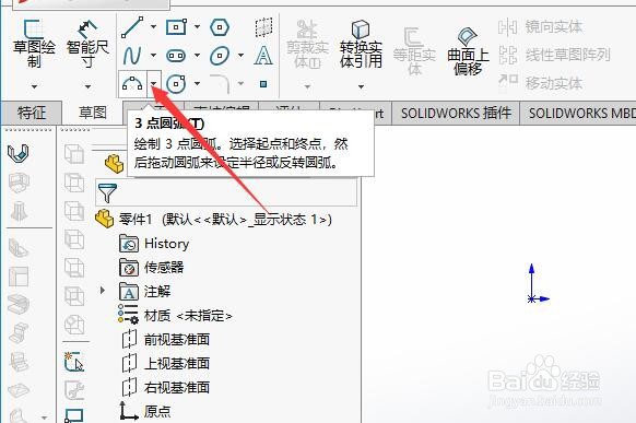 首先,新建一个零件图,选择三点圆弧工具绘制一个三点圆弧