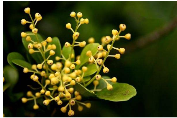 圆锥花序腋生,长5-10厘米,稍疏散无毛。花黄色,直径约2毫米,芳香。花萼5裂,裂片圆形。花冠5瓣,长圆形或近圆形。