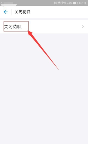 4、接着在此页面内只有一个选项,那就是“关闭花呗”,然后点击此选项。