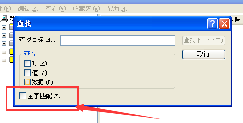 WindowsXP注册表编辑器查找项怎样全字匹配