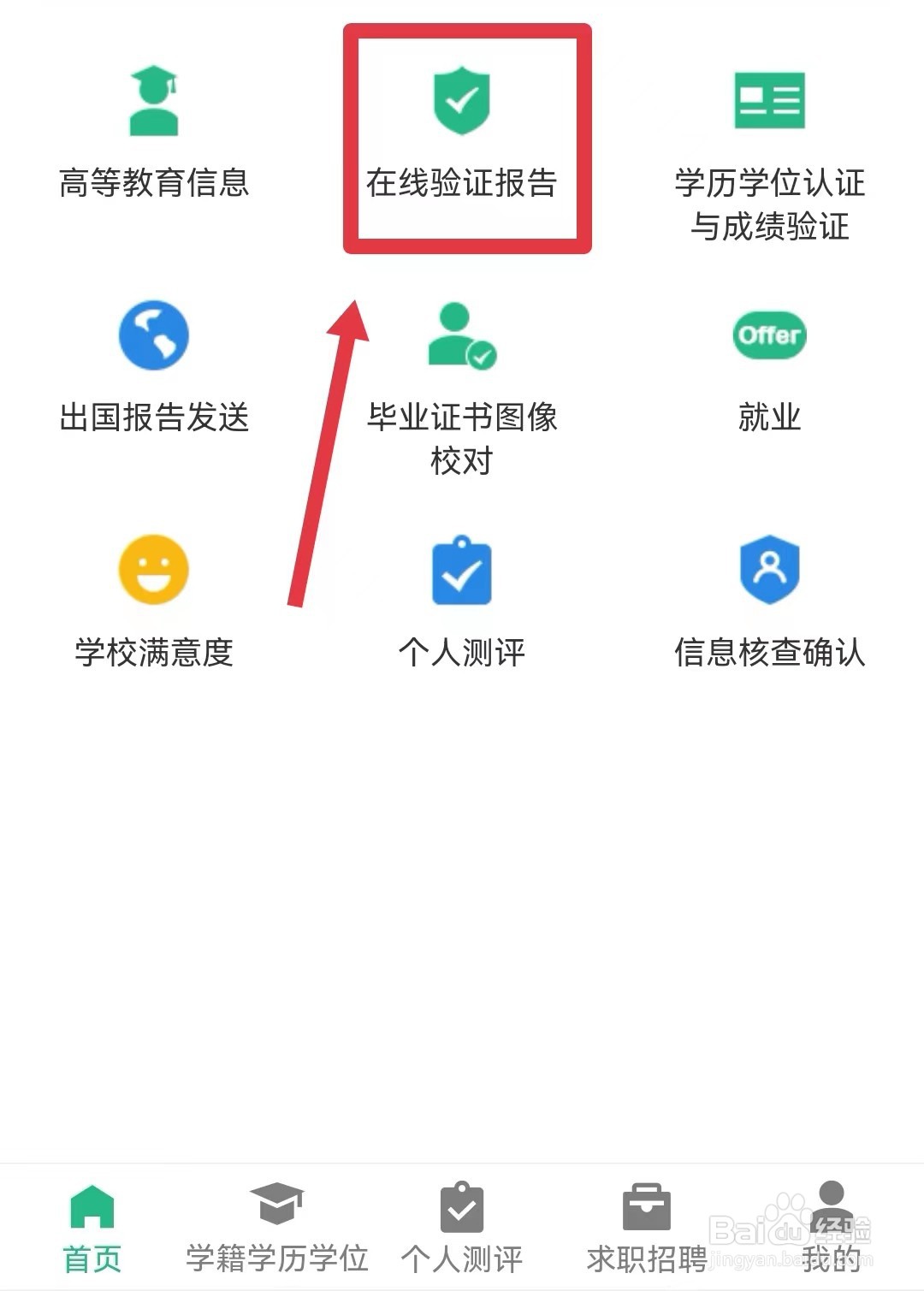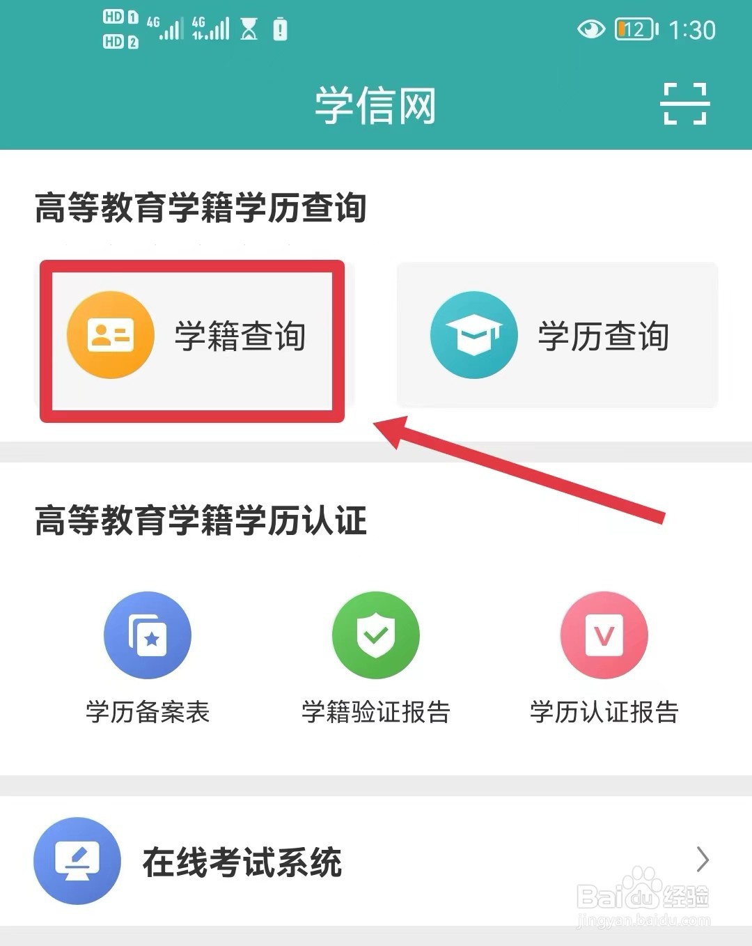 3/5返回首页,点击上方选项中的【学籍查询】按钮;