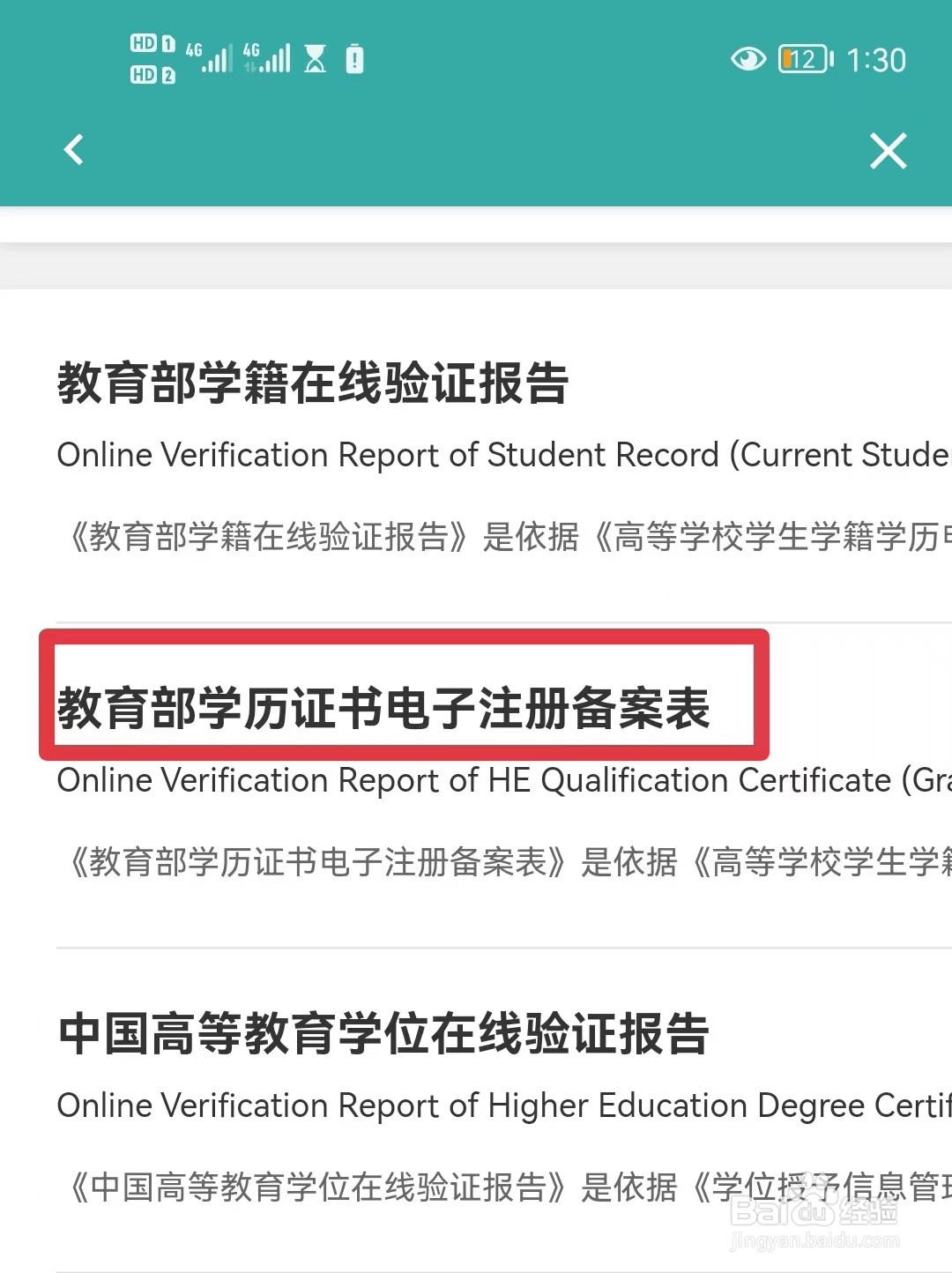 5/5找到教育部学历证书电子注册备案表选项,点击右侧的【查看】按钮,即可在里面申请注册备案表。