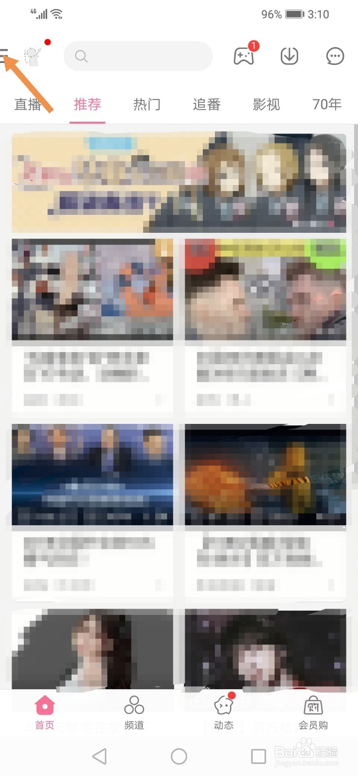 3/6哔哩哔哩打开后,点击左上角的三根横线。