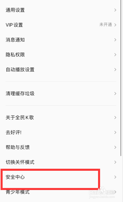首先打开全民k歌app,在设置界面点击安全中心进入。