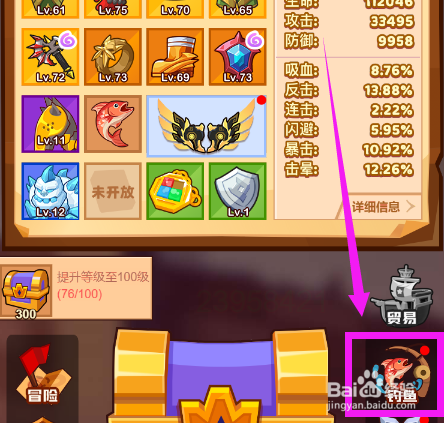 登录游戏后,杰哨往点击钓鱼功能(如图所示)