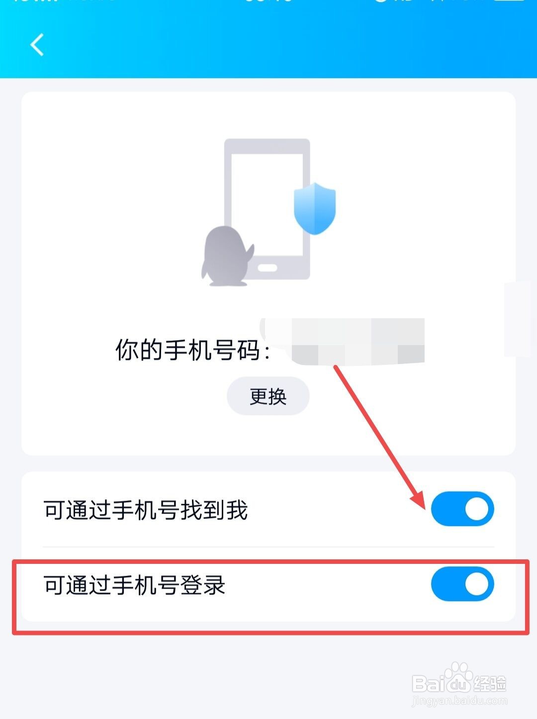 3/3在页面中找到可通过手机号码登录,将右侧的开关打开。