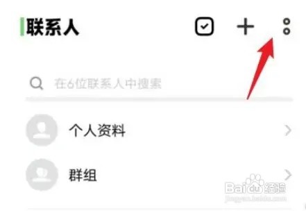 首先打开手机,在桌面找到并点击进入联系人,选择点击右侧上方按钮。