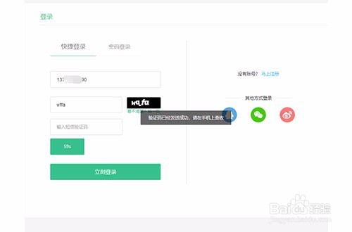 2/6进入登录页面,点击快捷方式登录。输入手机号码和验证码60之内获取手机验证码,填写进去,即可登录。