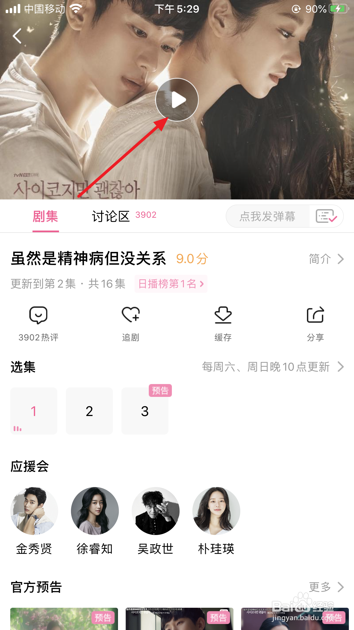 3/6可以按照提示进行一番筛选,一般排名较前的都是比较新,评价比较好的剧,例如点击“虽然是精神病但没关系”。