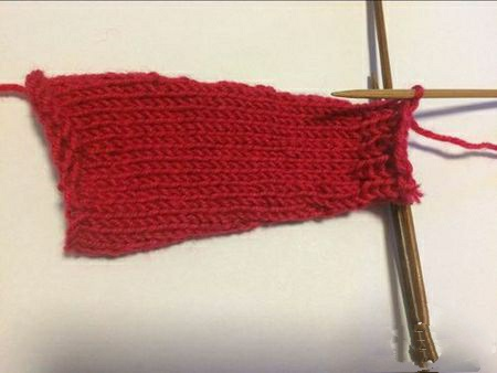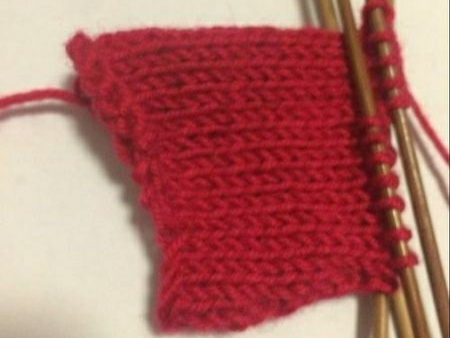4,然后正面织下针两头加针,方面织上针,直到编织到棒针上有18针。