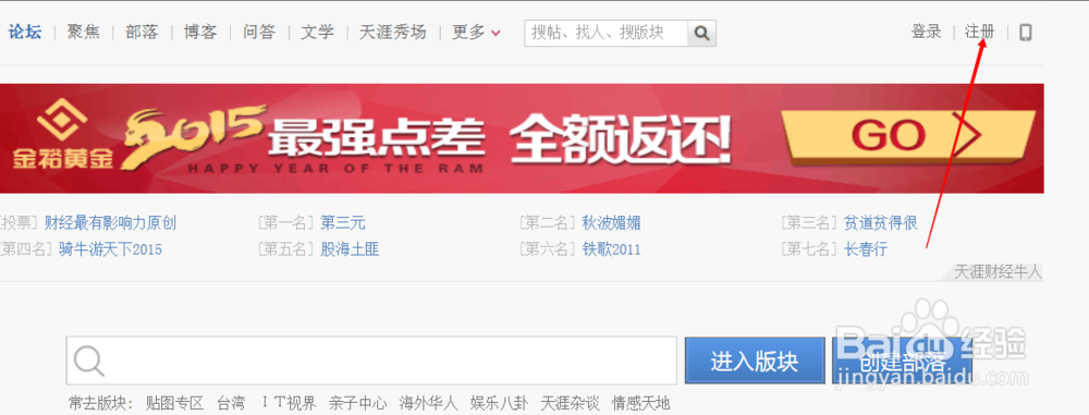 拥有一个天涯论坛账号,就可以随时随地发贴。方法/步骤1/6分步阅读