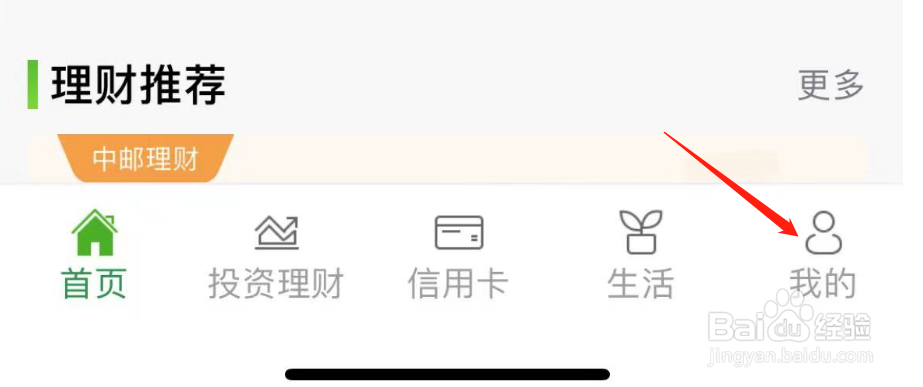打开“邮储银行”APP,选择【我的】选项,点击进入;
